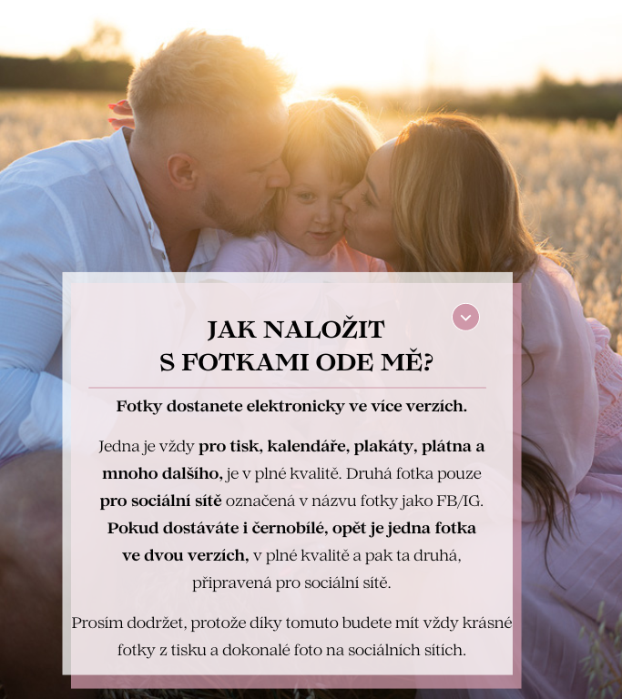 Nemusí se objevit všechny, nemusíte se objevit na mých FB a IG stránkách vůbec.Nicméně, pokud si zveřejnění výslovně nepřejete, musíte mě o tom informovat dopředu, usnadní nám to čas i nějaké komunikační neshody.